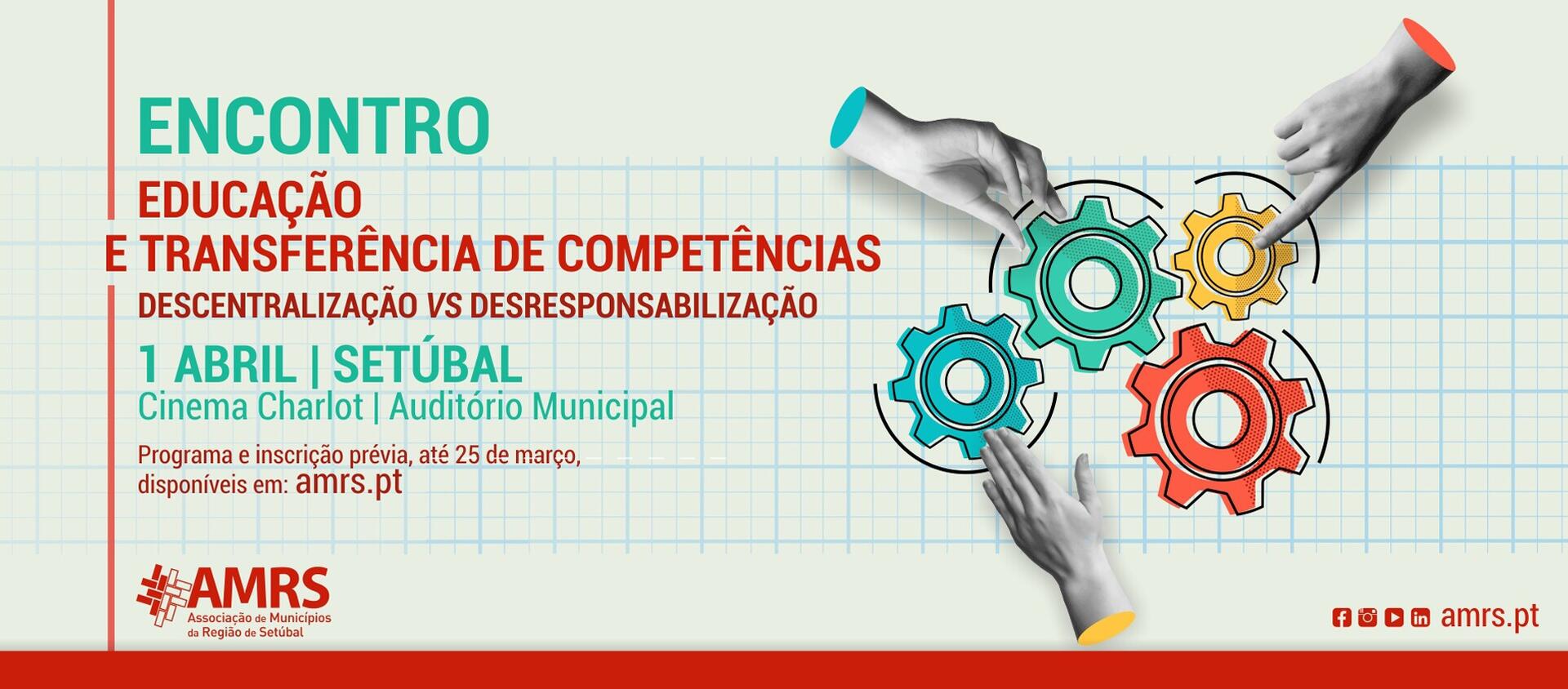 A AMRS – Associação de Municípios da Região de Setúbal promove no próximo dia 1 de abril, no Cinema Charlot, em Setúbal, o Encontro “Educação e Transferência de Competências – Descentralização vs Desresponsabilização”.