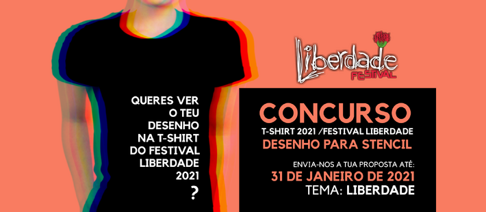 Tendo em conta a situação atual, resultante da pandemia COVID-19, o prazo de entrega dos desenhos a concurso para a t-shirt da próxima edição do Festival Liberdade, foi alargado até o dia 31 de janeiro de 2021.