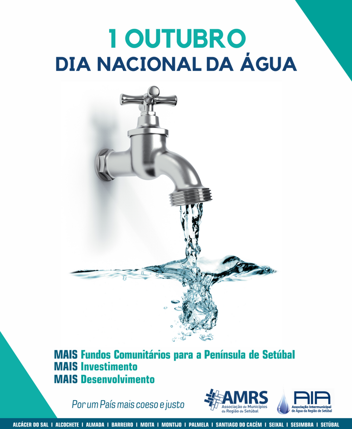 Por ocasião do Dia Nacional da Água de 2020, que se assinalará, amanhã, dia 1 de outubro, a Associação Intermunicipal da Água da Região de Setúbal (AIA), que integra os municípios de Alcochete, Almada, Barreiro, Moita, Palmela, Seixal, Sesimbra e Setúbal, entendeu oportuno, mais uma vez e como vem sendo hábito nesta ocasião, saudar a data e o seu significado de evocação da relevância dos recursos hídricos e dos serviços de águas para a preservação dos ecossistemas naturais e o progresso, o bem-estar e a saúde dos seres humanos, designadamente na nossa Região, a Península de Setúbal.